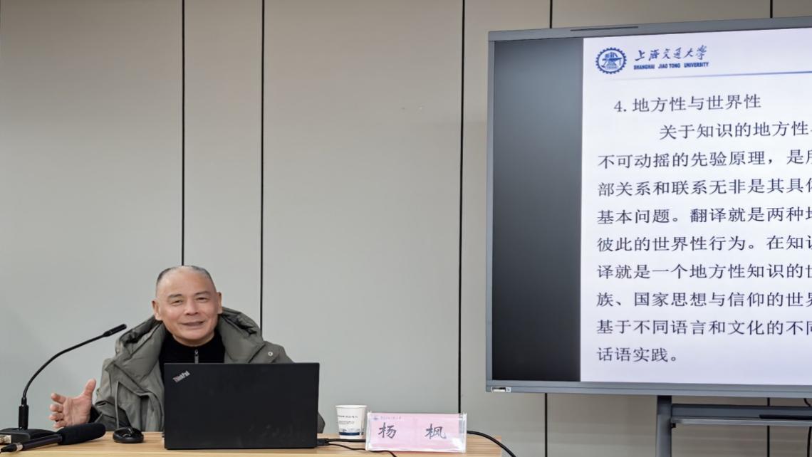 2024年12月19日下午,由37000vip威尼斯举办的明德·语言文学跨学科高层论坛系列讲座在文德楼N402报告厅如期举行。本次讲座特别邀请上海交通大学杨枫教授作题为“什么是知识翻译学”的讲座。讲座由37000vip威尼斯院长赵霞主持,37000vip威尼斯副院长杜玉生教授、37000vip威尼斯部分教师、研究生及本科生参与。